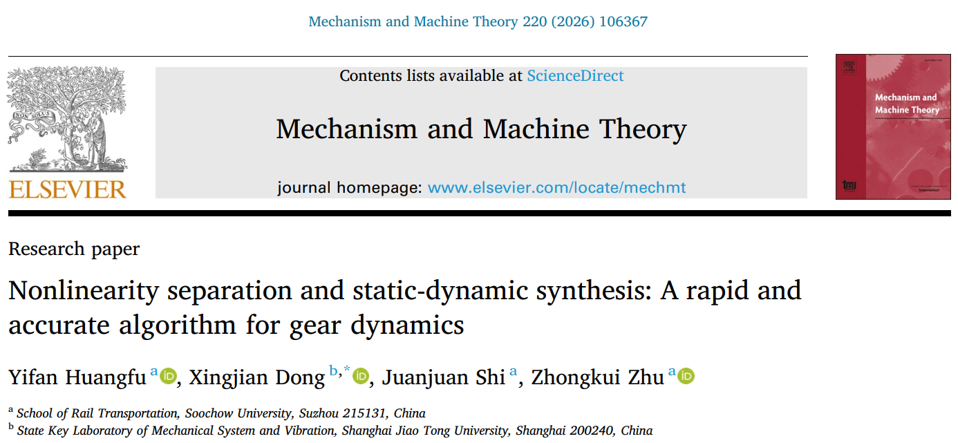 Huangfu Yifan, Dong Xingjian, Shi Juanjuan, Zhu Zhongkui. Nonlinearity separation and static-dynamic synthesis: A rapid and accurate algorithm for gear dynamics [J]. Mechanism and Machine Theory, 2026, 220: 106367.