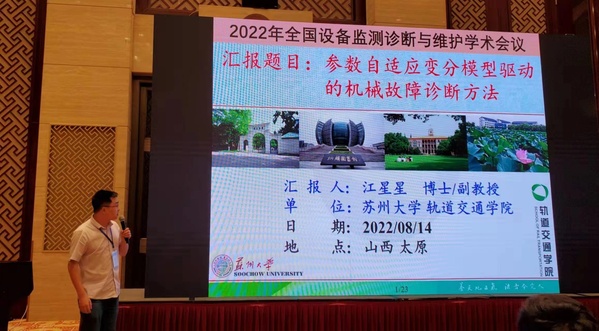 黄伟国教授受邀在“轴承齿轮故障诊断”分会场作了题为“齿轮箱多源保真保凸稀疏优化故障诊断方法研究”的报告(石娟娟副教授代为汇报)。江星星副教授受邀在“非平稳信号处理方法”分会场作了题为“参数自适应变分模型驱动的机械故障诊断方法”的报告。