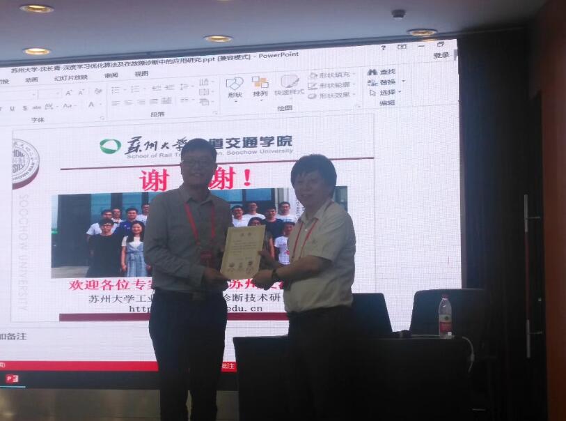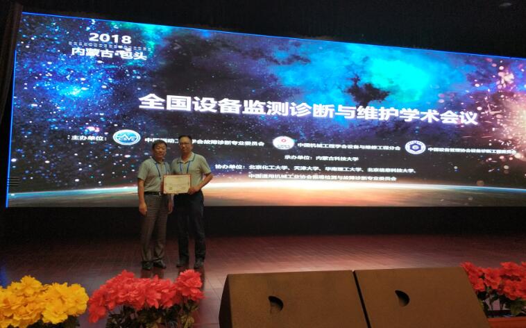 8月10—12日,2018年全国设备监测诊断与维护学术会议暨第十六届全国设备故障诊断学术会议、第十八届全国设备监测与诊断学术会议、2018年全国设备诊断工程会议在内蒙古包头召开,会议主题为“智能诊断与维护”。中国工程院高金吉院士担任会议组委会主席。期间,中国振动工程学会故障诊断专业委员会常务理事会召开,选举产生了新一届常务理事,我所朱忠奎教授成功当选! 大会报告外,会议期间举行了十余场分会报告,我所沈长青、王俊副教授分别获邀参加“青年教师专题”及“信号处理与故障诊断专题”,分别做了“深度学习算法优化及其在机械故障诊断中的应用研究”和“风力发电机动力传动系统关键零部件故障诊断技术”的邀请报告,与国内同行进行了深入交流。另外,王林同学投稿的“非凸正则化稀疏表示及其轴承故障特征提取应用”获得录用,并以海报形式在会议现场向与会人员公开,同时,李宁同学在现场与各位感兴趣的人员进行了交流。